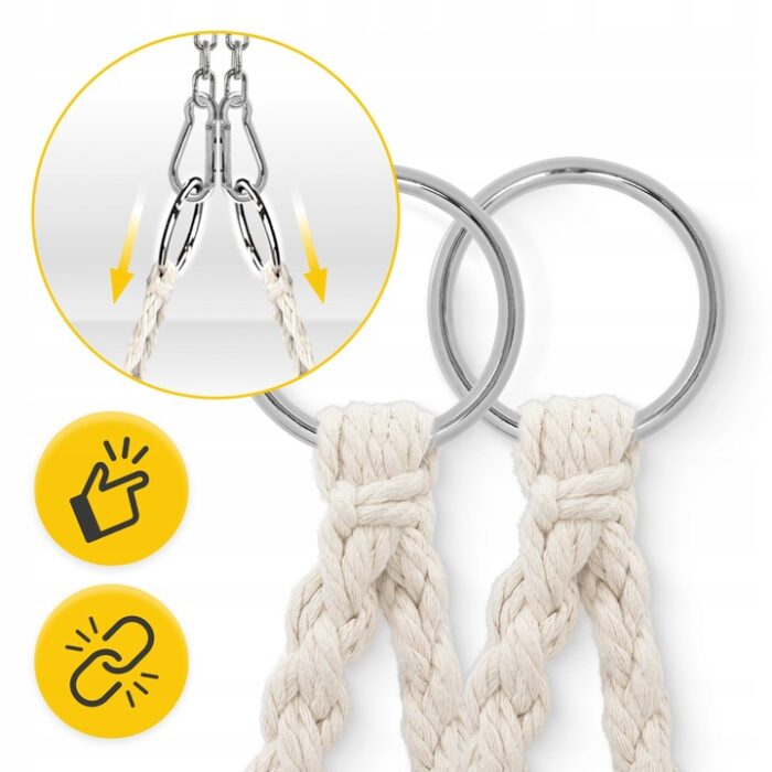 BOHO hengestol beige for hage stue og terrasse med metallramme og frynser – Skap en varm og avslappende atmosfære hjemme eller ute med den elegante BOHO hengestolen fra 4FIZJO. Denne komfortable hengestolen kombinerer bohemsk design, holdbarhet og funksjonalitet, og passer perfekt inn i både moderne og klassiske miljøer.