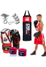 80 cm/15 kg – Boksesett – Boksesekk for barn + boksehansker DBX Rød – Boksesett for barn designet for barn i alderen 5 til 14 år. Ved å velge dette settet kan du være sikker på at barnet ditt blir utstyrt med alt utstyret som trengs for å starte boksetrening på boksesekken og bli glede av boksetrening.