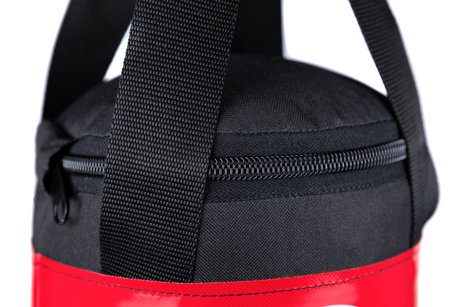 Bærestroppene til boksesekk er sikret med et ekstra belte som omgir vesken for å øke treningsoverflaten på vesken og beskytte dem under sammenstøt.