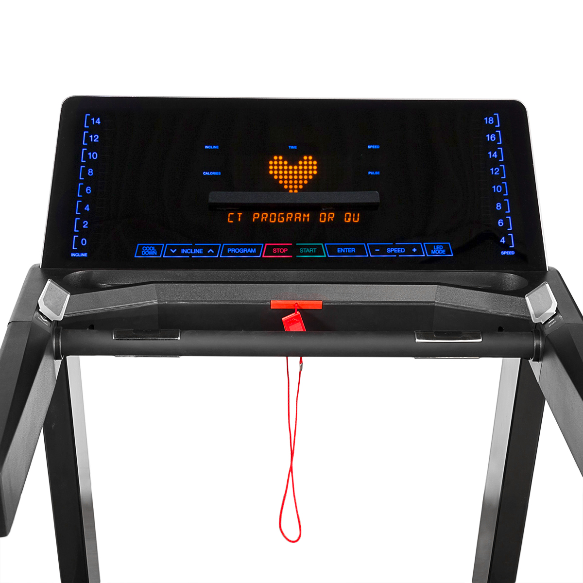 Det ergonomiske panelet på BE1862 HMS PREMIUM er utstyrt med en intuitiv LED-skjerm som gjør det enkelt å velge det riktige programmet for deg. Joysticks lar deg raskt justere hastighet og incline, tilpasset dine individuelle behov. Med et hastighetsområde fra 0,5 til 24 km/t og en inklinasjonsgrad fra 0 til 15 %, kan du arrangere en full, intensiv trening, uansett om du er nybegynner eller en erfaren løper.