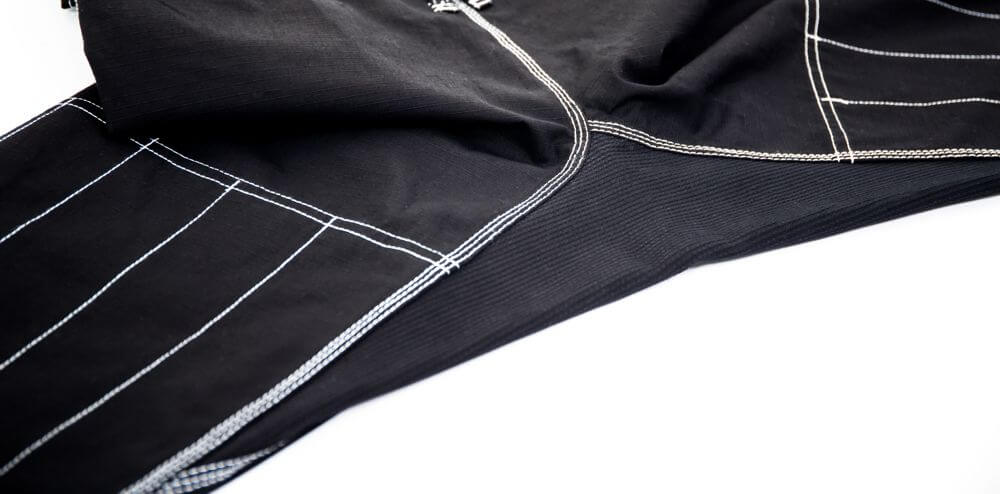 Kimonoet er laget av lett bomull (ca. 350 GSM) som gir en perfekt balanse mellom holdbarhet og bevegelighet. Forsterkede sømmer på utsatte områder gir ekstra styrke, mens elastisk midje med snøring på buksene gjør det enkelt å tilpasse passformen. Kragen er fylt med EVA-skum, som gir økt komfort og raskere tørketid.