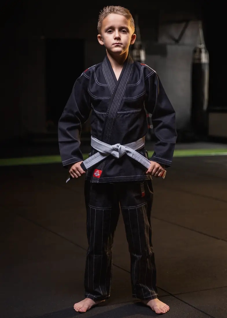 Dette er et komplett sett som består av jakke, bukse og hvitt belte. Dermed får barnet alt det trenger for å starte med BJJ eller fortsette treningen på en trygg og profesjonell måte.