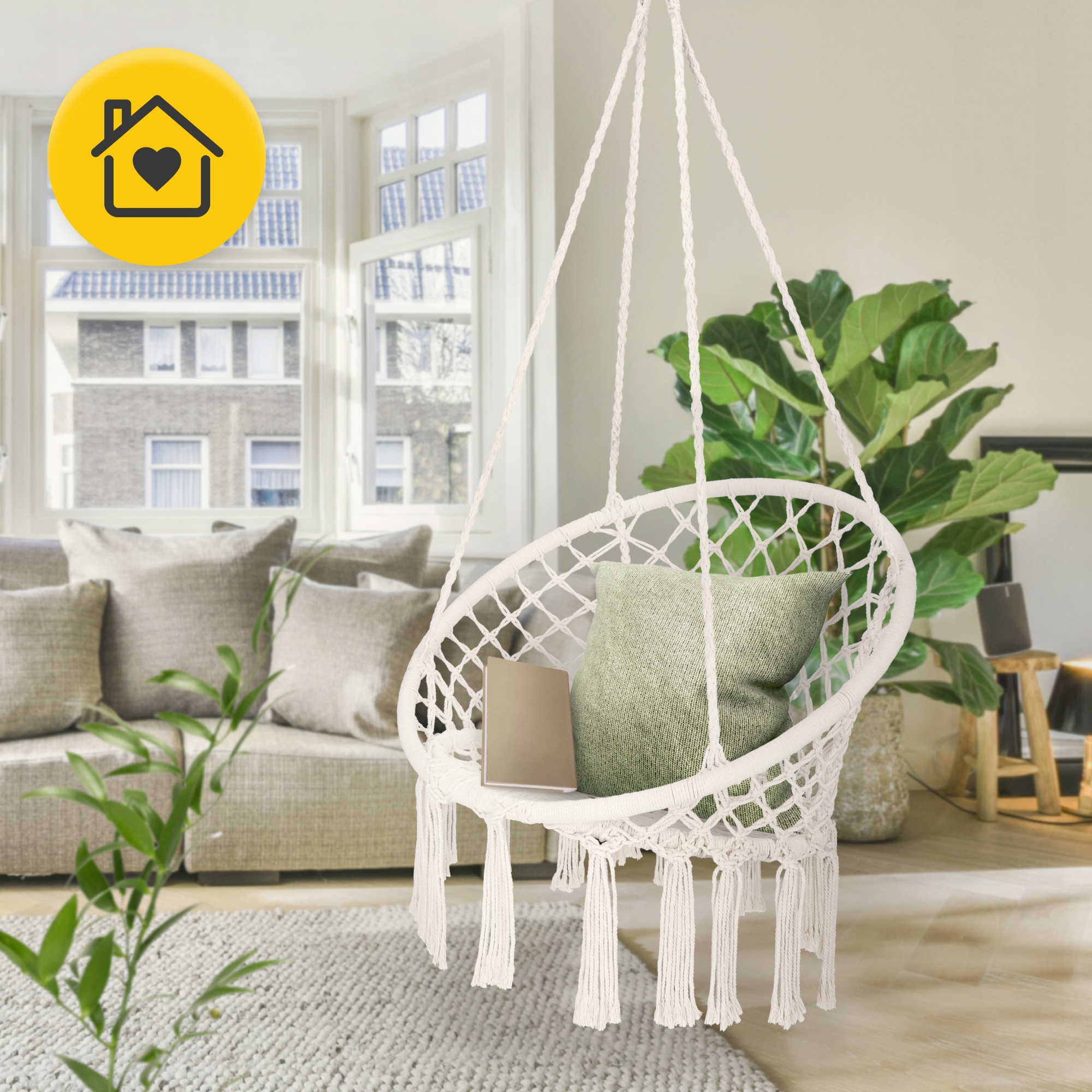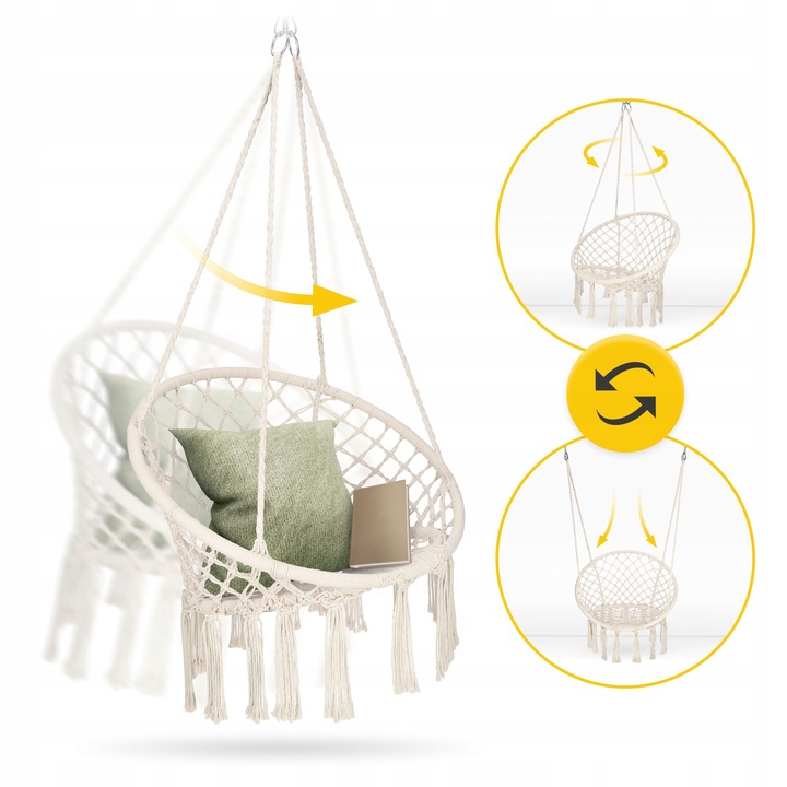 BOHO hengestol – beige makramehuske for avslapning i stue, hage og på terrasse