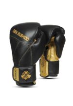 Boksehansker «Hammer gull»-modellen er laget av naturlig okseskinn i en meget effektiv sort og gull farge.