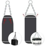 I settet med boksesekk får du ikke bare et slitesterkt kjede med svivel, men også en ring som vil sørge for et perfekt utseende på vesken til tross for den svært høye vekten.