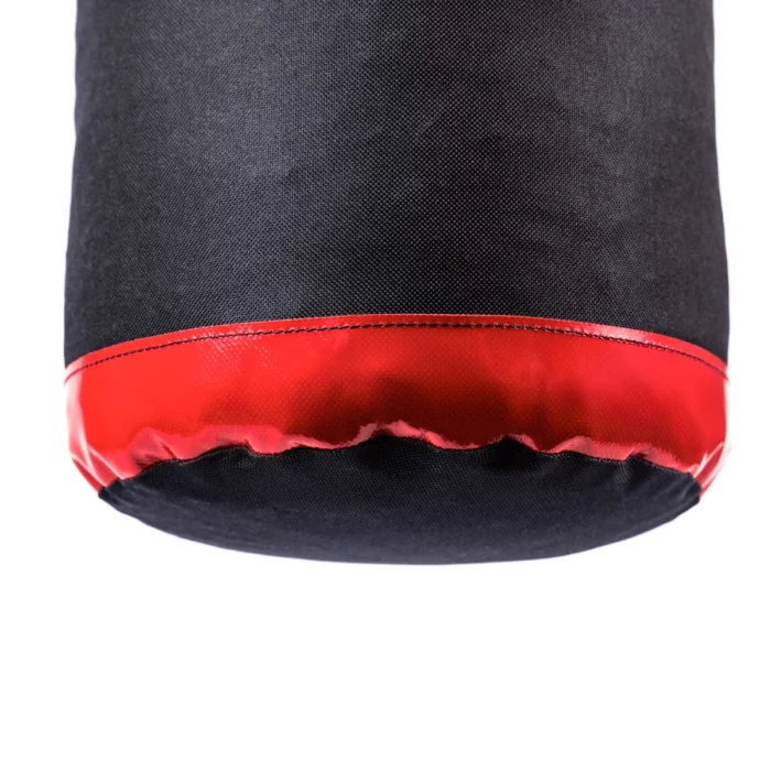 En fullt fylt og treningsklar boksesekk laget av tykt og rivebestandig polyestermateriale.