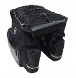 En stor sykkelveske montert på stativet. En praktisk, komfortabel sykkelveske for folk som bruker sykkel hver dag.