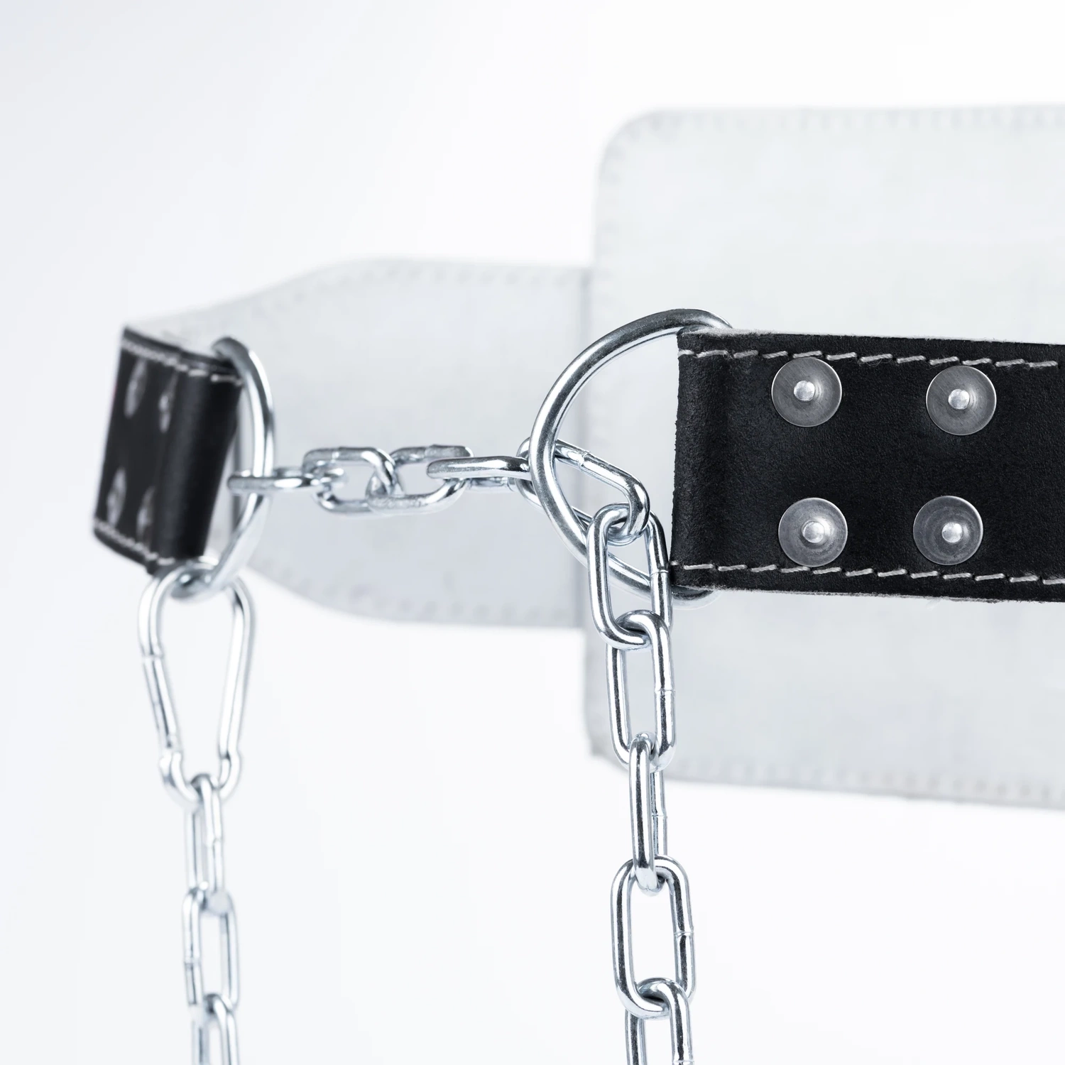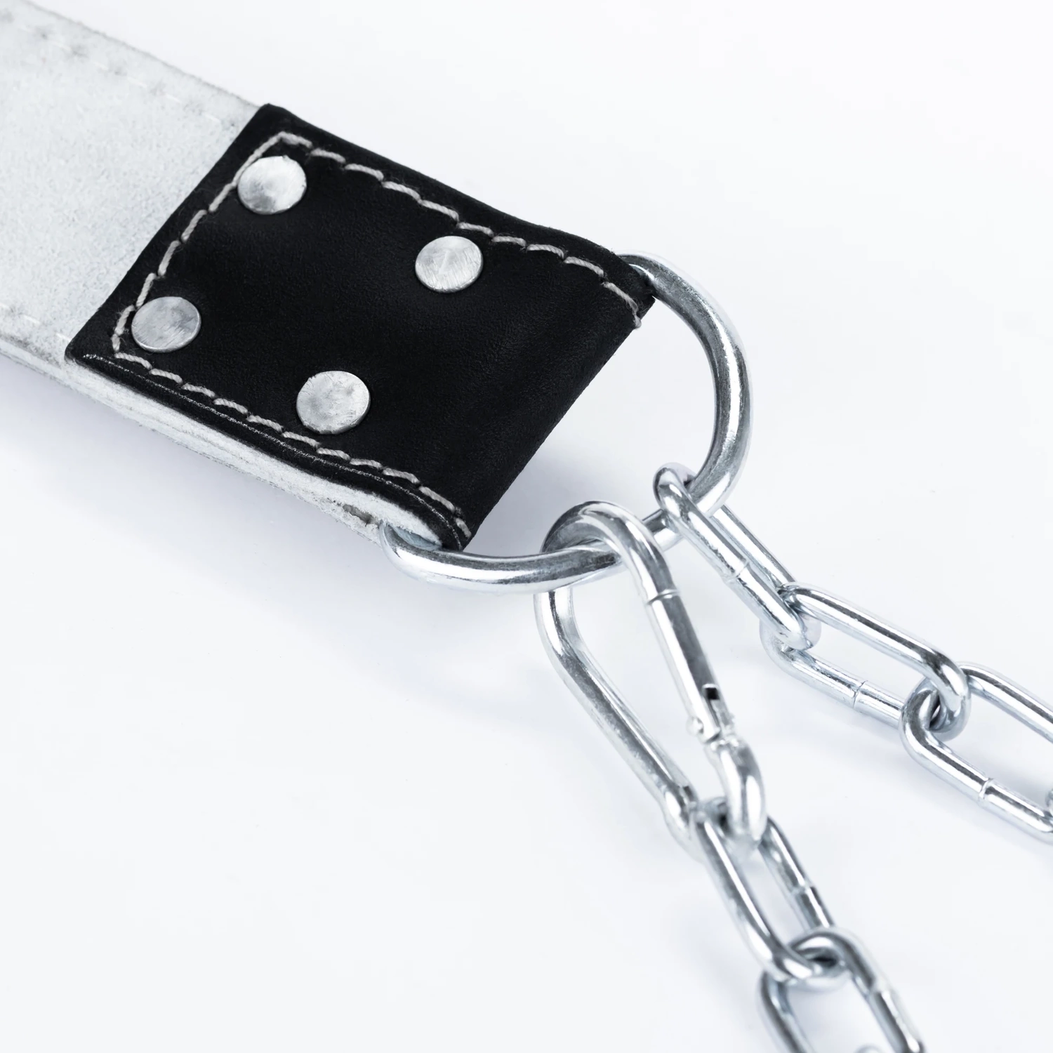 Kjedefestespennene er forsterket med 4 slitesterke nagler, som sikrer full sikkerhet under intens trening. Takket være dette er beltet eksepsjonelt motstandsdyktig mot belastninger, noe som garanterer dets pålitelighet selv under de vanskeligste forhold.