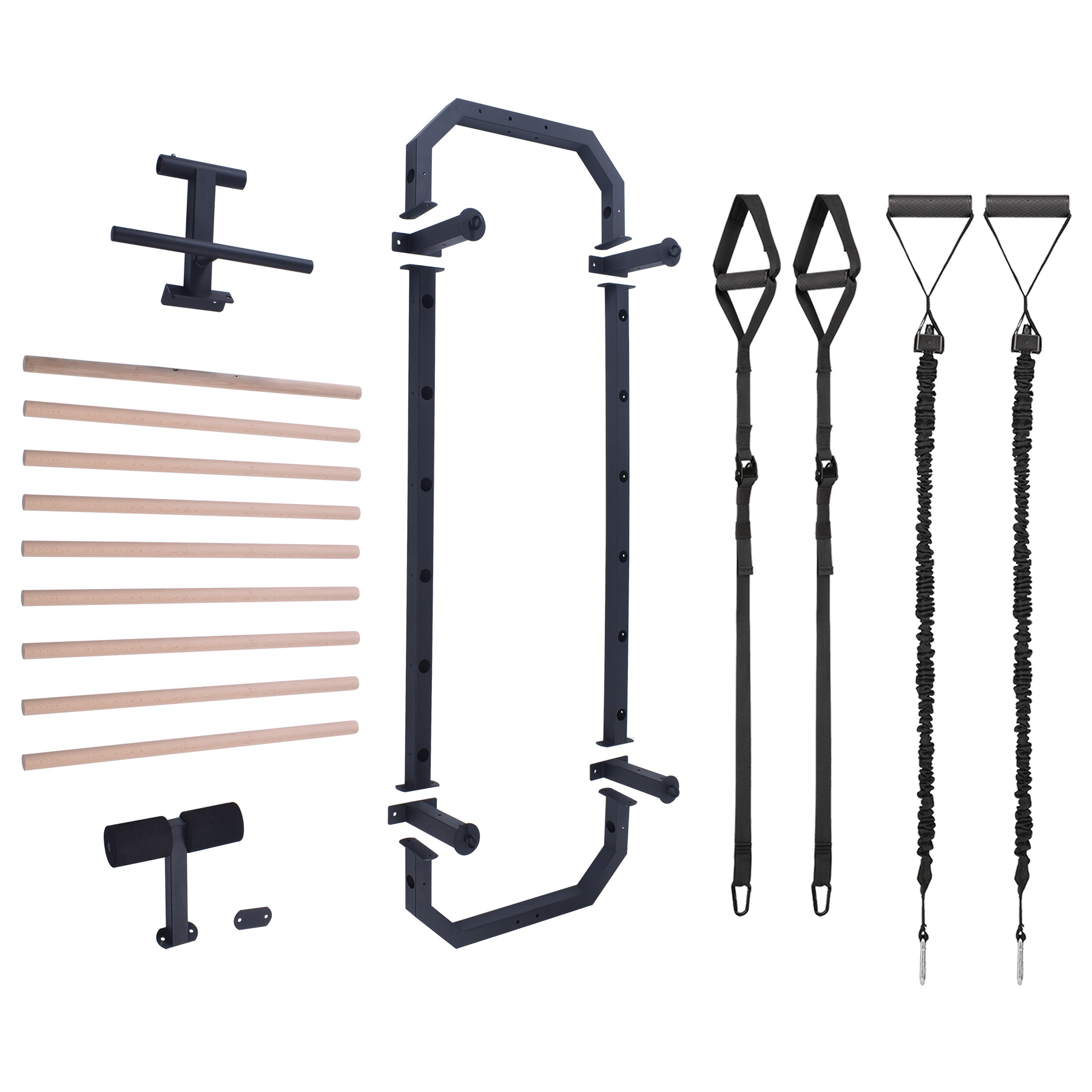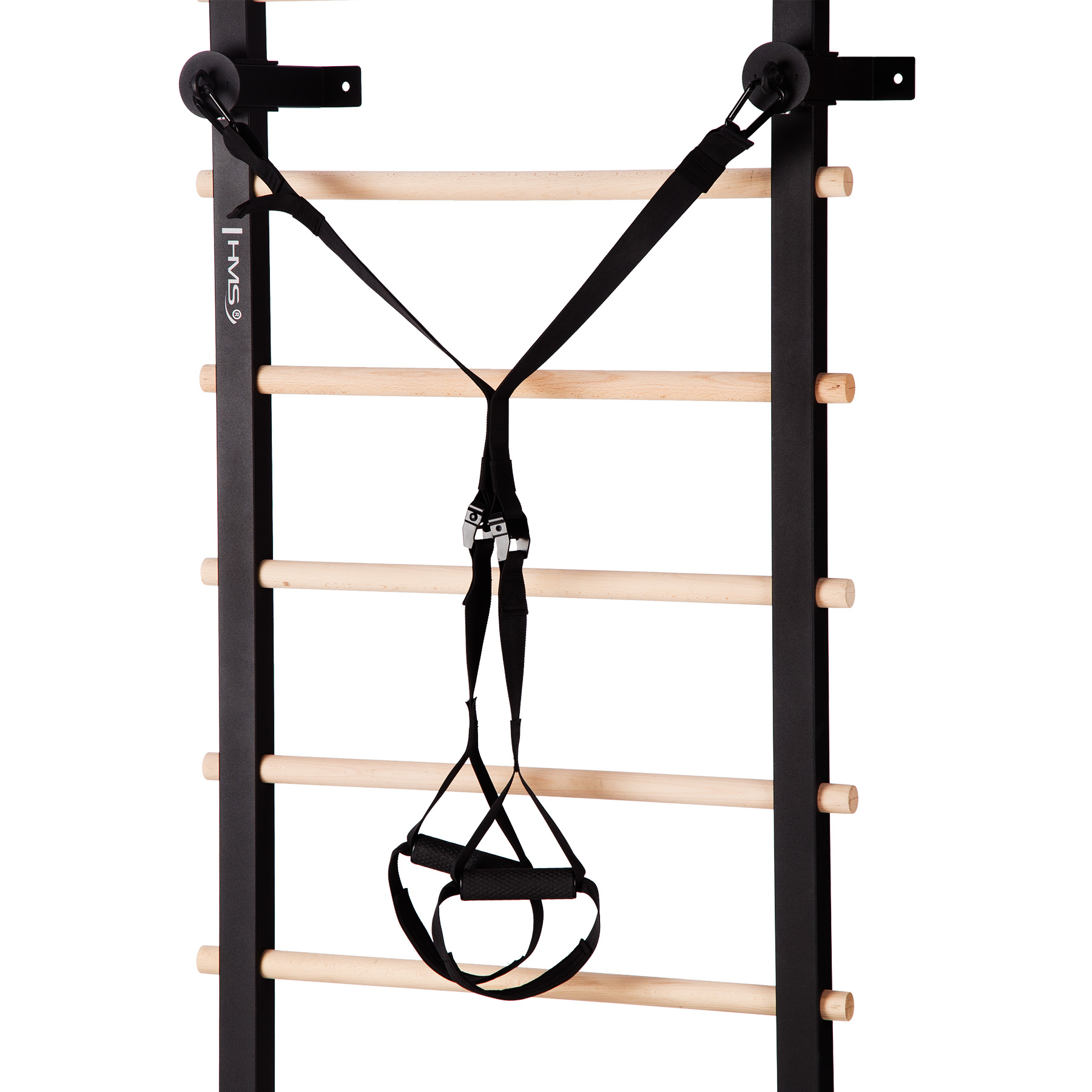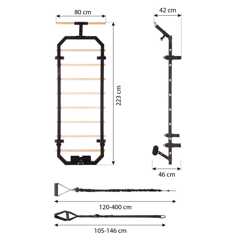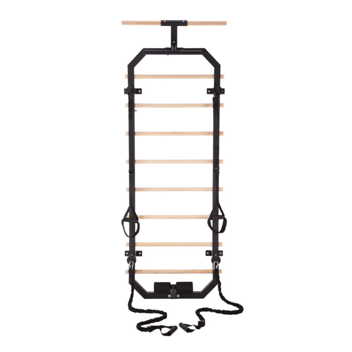 DW2708 ser veldig estetisk ut og passer inn i ethvert interiør. Gymnastikkstigen har et elegant design. Kombinasjonen av svart farge og trebjelker gjør at DW2708 harmonerer med enhver vegg. Gymnastikkbånd og -bånd er også designet i svart. DW2708-settet er ikke bare treningsutstyr, men også en hjemmedekorasjon.