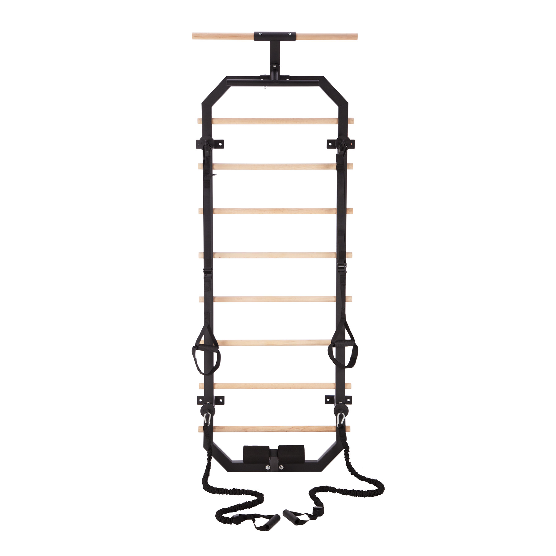 DW2708 multifunksjons vegg er en ideell løsning for folk som ønsker å trene hjemme. Settet består av en gymnastikkstige som er festet til veggen, samt spesielle gummibånd og tape. Produktet er laget av høykvalitets stål og har 8 trinn i bøketre. Stigen er 223 cm høy og 80 cm bred, så alle kan trene på den.