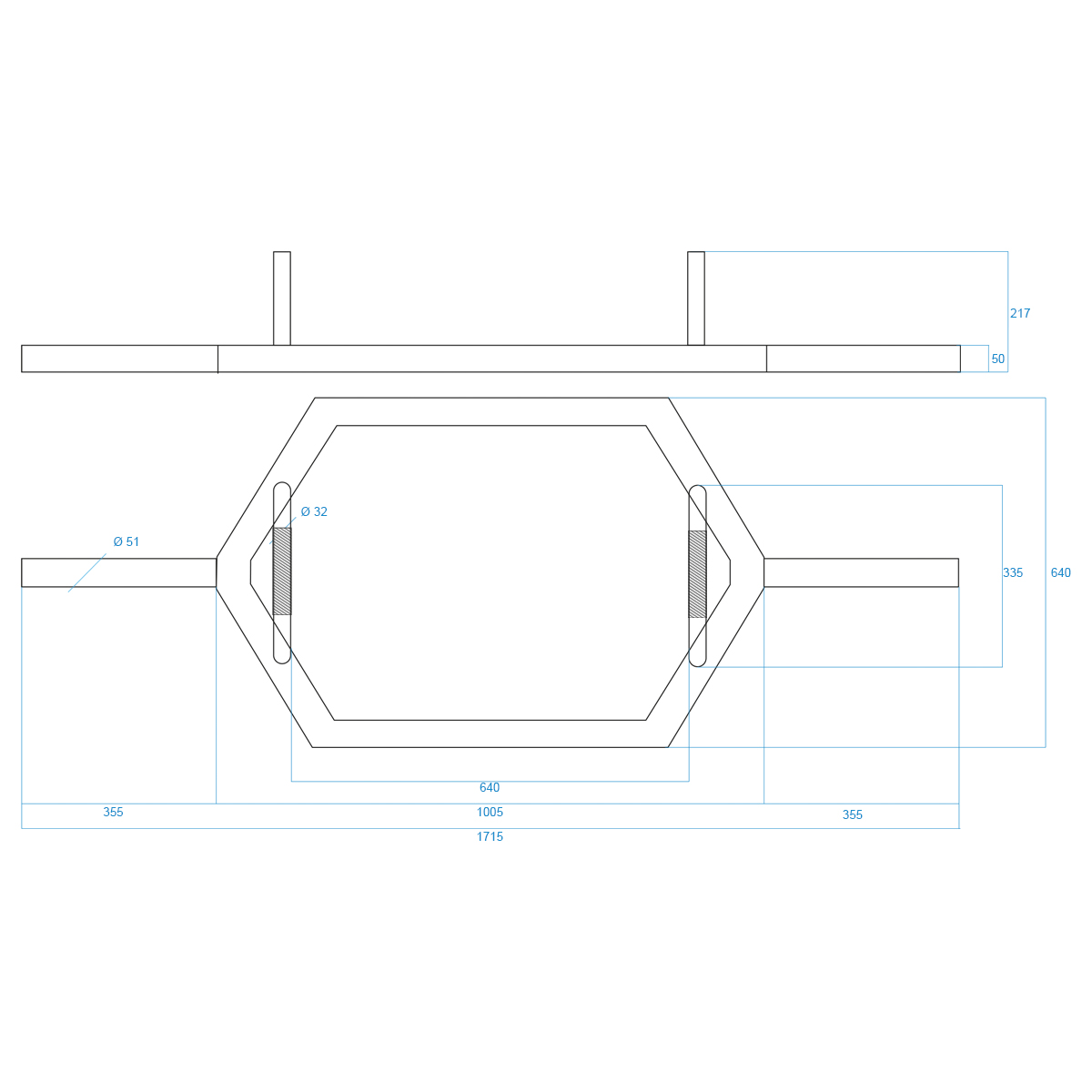 GHX02B HMS – Sekskant Olympisk Bar for Gatetrening