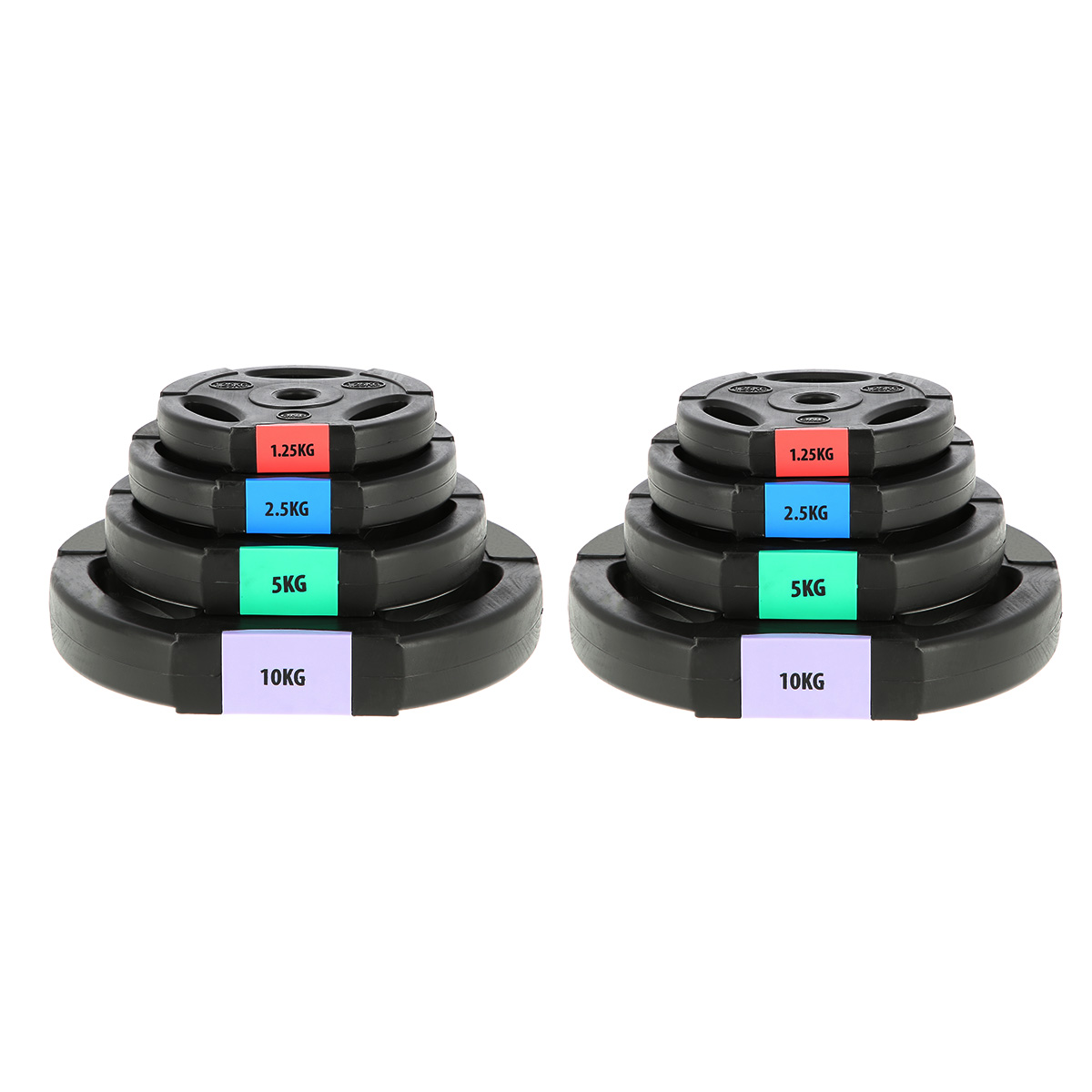 - Antall vekter i settet: 2 x 1,25 kg / 2 x 2,5 kg / 2 x 5 kg / 2 x 10 kg