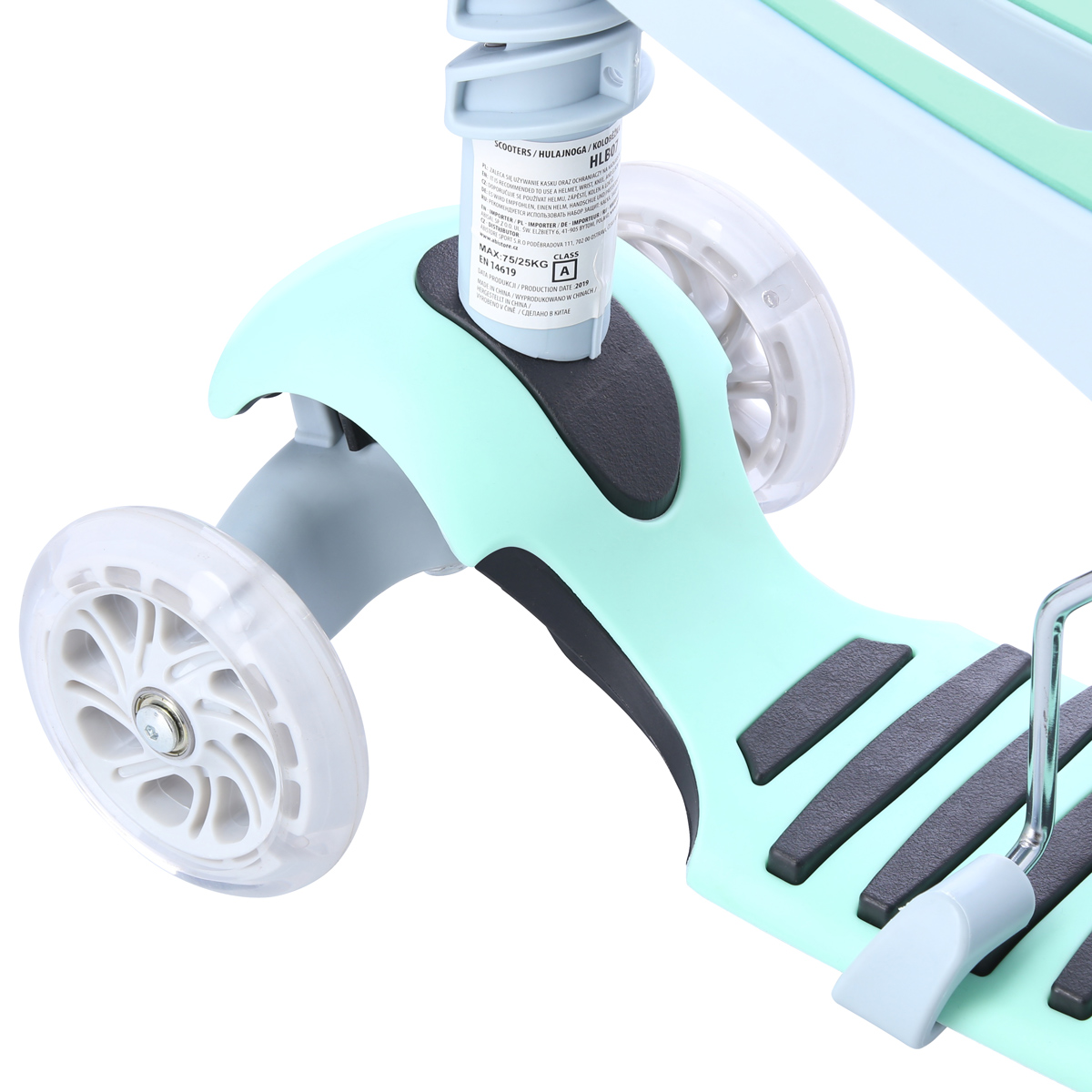 - Materiale: Plattforms: PP, nylon; Styrekolonne: aluminiumsbelegg; Hjul: Front PU 120mm/78A (LED), Bak PVC 90mm/82A.