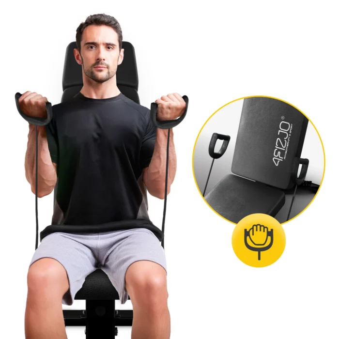 Justerbar treningsbenk EVO fra 4FIZJO – stabil, sammenleggbar og perfekt for styrketrening hjemme. 8 nivåer ryggstøtte og opptil 170 kg belastning.