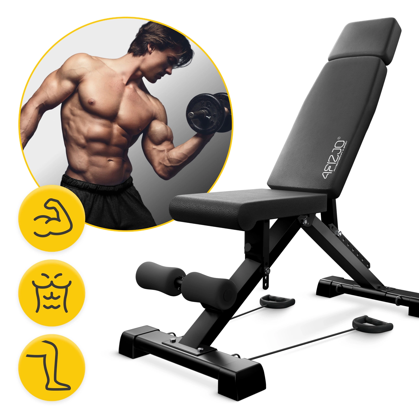 Justerbar treningsbenk EVO 4FIZJO – multifunksjonell treningsbenk for hjemmetrening med sammenleggbar design