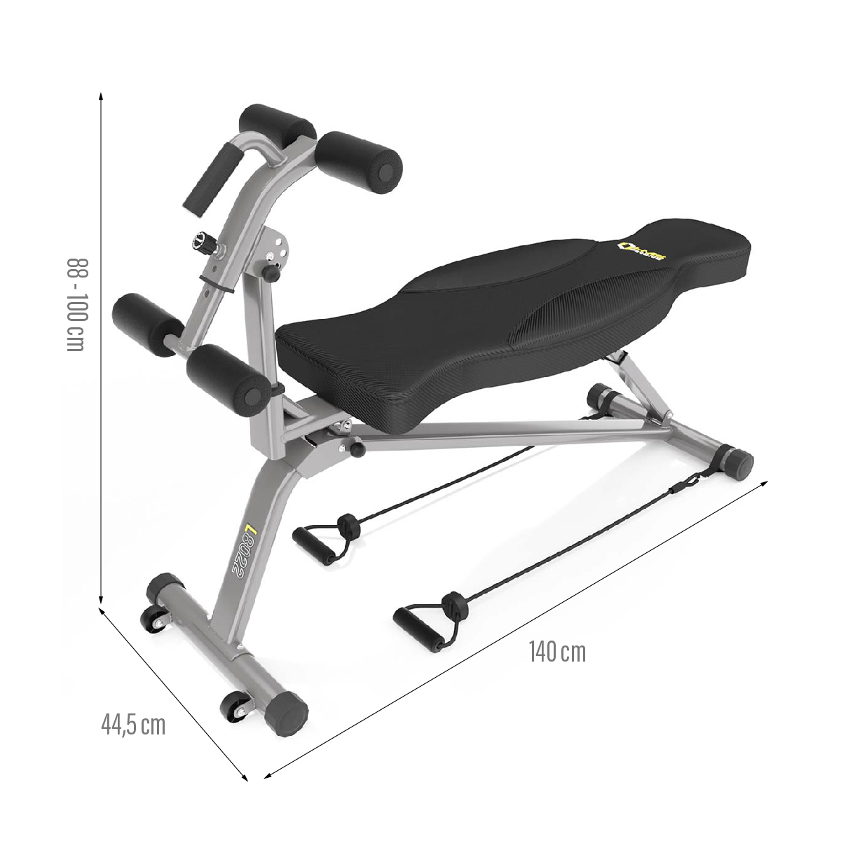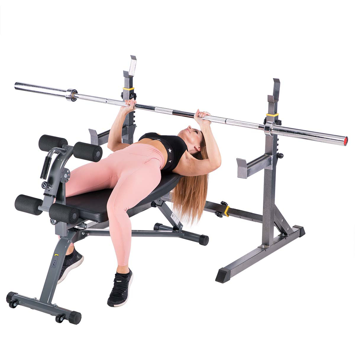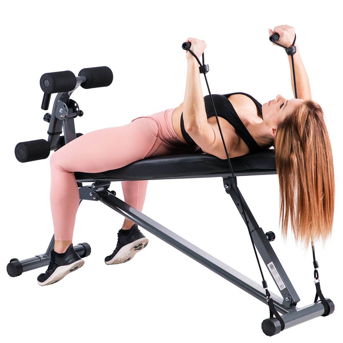 Benken byr på mange treningsmuligheter. Konstruksjonen gjør den ideell for bruk med vektstangstativ så vel som for trening med manualer. Utformingen av benken lar deg sette ryggstøtten diagonalt nedover, noe som lar deg utføre bøyninger, dvs. den s.k. knaser. Bengrepet vil sikre komfort og sikkerhet mens du utfører denne øvelsen som engasjerer magemusklene.