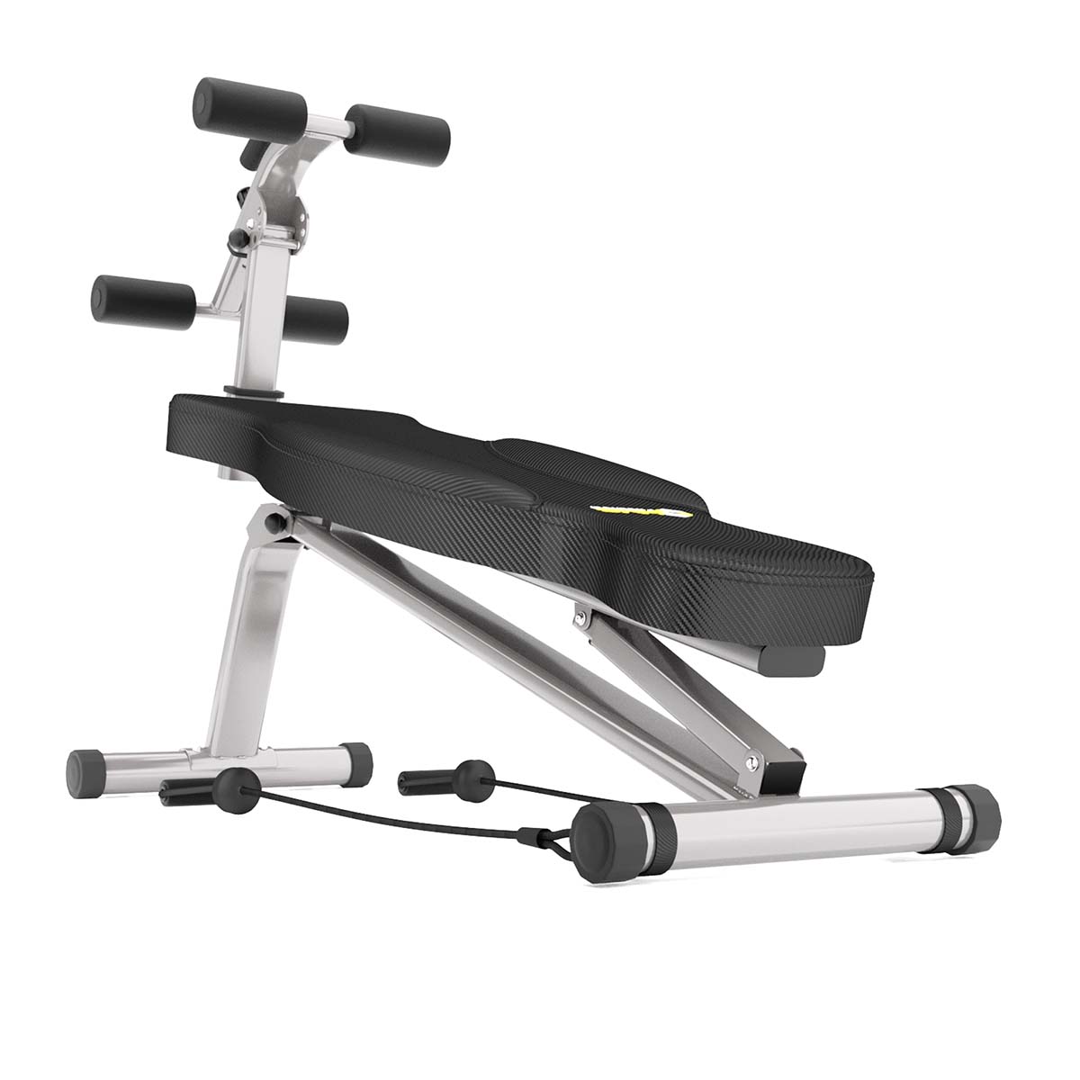 Benken har en spesialprofilert ergonomisk ryggstøtte, som direkte påvirker komfort og bekvemmelighet under trening og fremfor alt stabiliserer den riktige posisjonen til treneren. Et solid brett sikrer stabilitet i ryggstøtten, og en myk svamp garanterer komfort og bekvemmelighet under trening. Tykkelsen på svampen er veldig viktig fordi den har en direkte innvirkning på den perfekte plasseringen av kroppen. Moderne karbontrekk er motstandsdyktig mot fuktighet og svette og hindrer kroppen i å skli under trening. Det er også veldig behagelig å ta på.