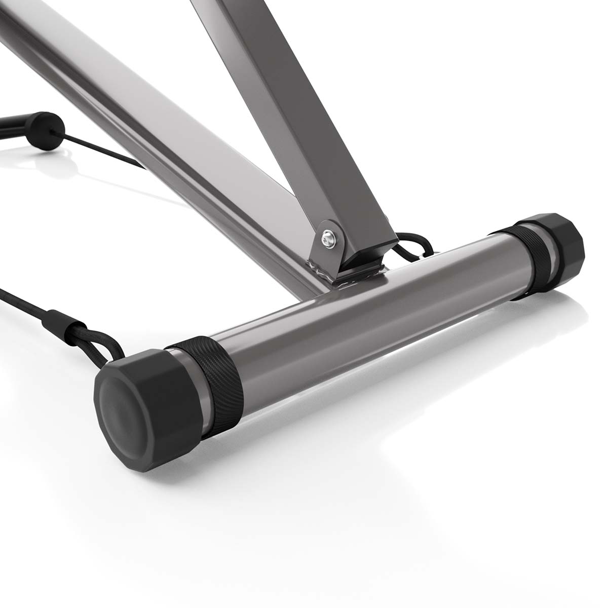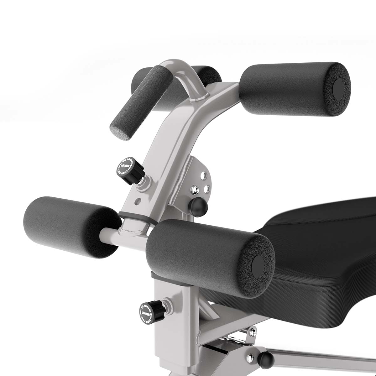 Benken har justerbar ryggvinkel og justerbar benholderhelning og høyde. Slike omfattende muligheter for å manøvrere benkens posisjon vil tillate deg å fritt justere den til brukerens høyde og til en spesifikk øvelse.