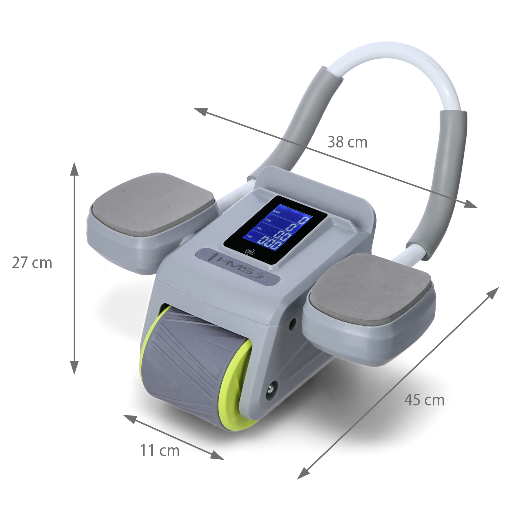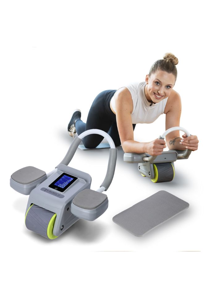 HMS KA08 GRÅ ABS AUTOMATISK TRENINGSHJUL FOR MAGEMUSKLER MED LCD-DISPLAY OG LADING