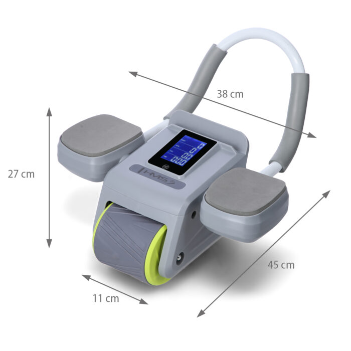 HMS KA08 GRÅ ABS AUTOMATISK TRENINGSHJUL FOR MAGEMUSKLER MED LCD-DISPLAY OG LADING
