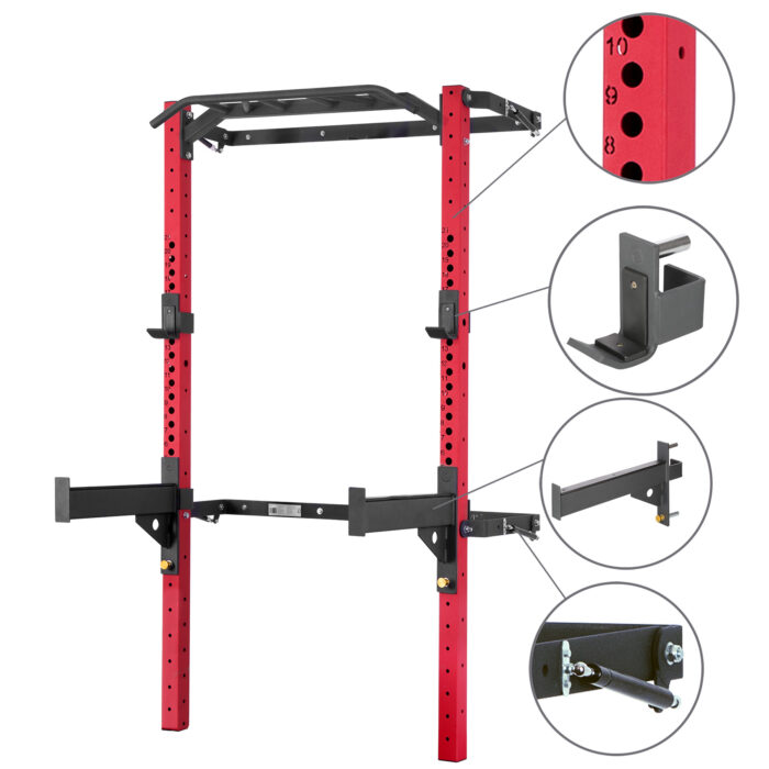 Sammenleggbart treningsbur KLT23 fra HMS er designet på en slik måte at det møter gjeldende markedstrender og oppfyller forventningene til de mest krevende kundene. Buret i denne varianten selges med opptrekksstang, stangkroker og sikkerhetsstøtter. Takket være KLT23 vil du få nye treningsmuligheter.