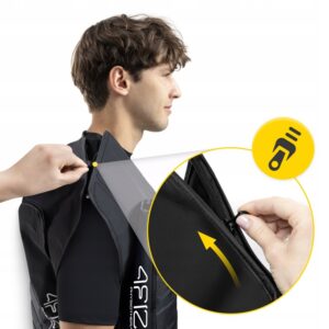 Vesten finnes i ulike størrelser og kan enkelt tilpasses kroppen takket være det fleksible designet. Produktet er lett å rengjøre, og det tørker raskt. Den er diskret nok til å kunne brukes under klær, noe som gjør den egnet for daglig bruk uten å påvirke brukerens livsstil.