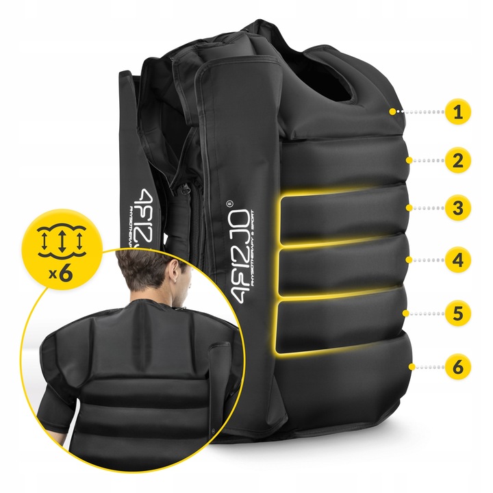 Kompresjonsvesten dekker hele overkroppen og gir jevn og effektiv kompresjon over brystet, magen og øvre del av ryggen. Dette bidrar til å stimulere lymfesystemet og redusere hevelse. Den er spesielt nyttig for personer som opplever væskeansamling i overkroppen, eller som gjennomgår rehabilitering etter kirurgiske inngrep i brystregionen.