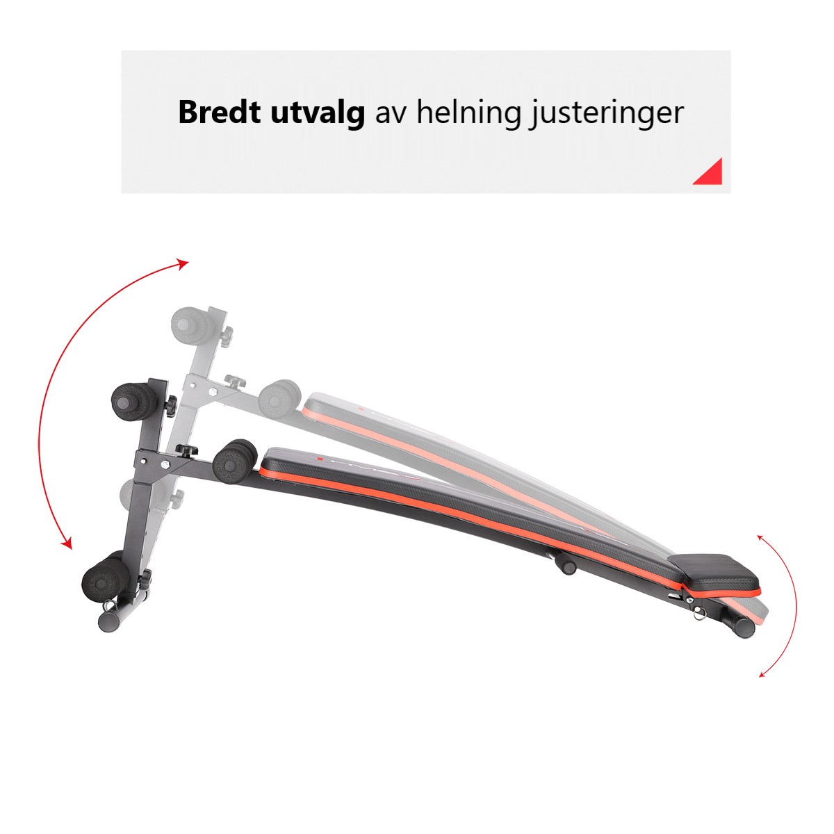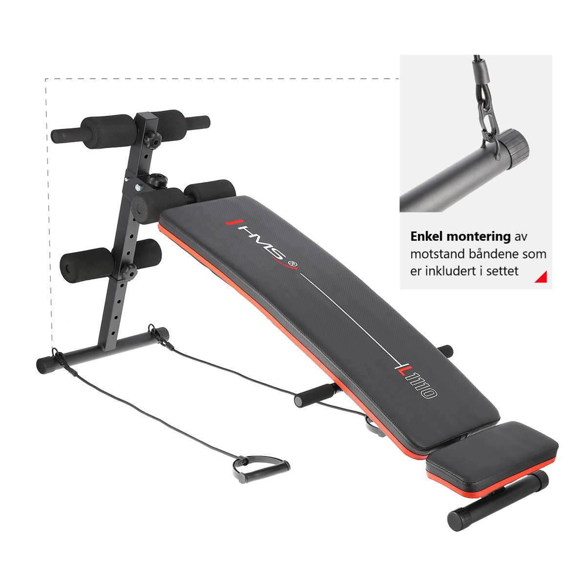 L1110 HMS treningsbenk er en skråbenk hvis hovedbruk er å utføre bend, dvs. den s.k. knaser.