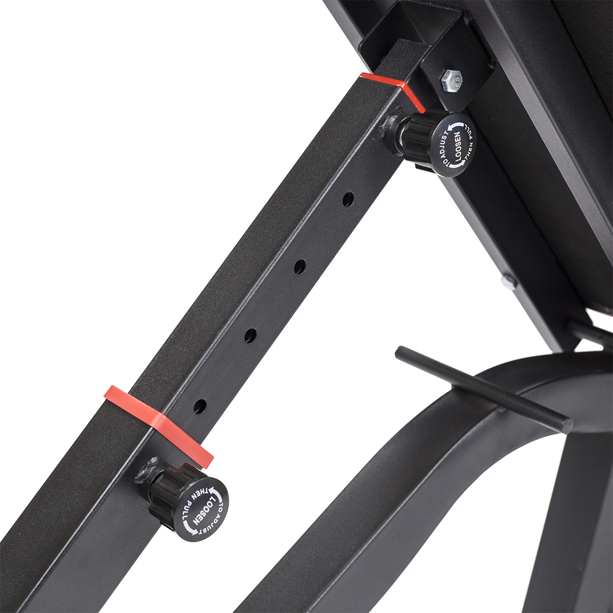 Nøkkelfunksjonen som skiller L8015-benken fra andre treningsenheter er muligheten til å justere ryggstøtten. Takket være dette kan brukere justere vinkelen på ryggstøtten til deres individuelle behov mens de utfører et bredt spekter av øvelser – fra sit-ups, gjennom liggende vektstangpress, til øvelser for ryggmuskulaturen. Denne justeringen gir mulighet for en omfattende trening av hele kroppen.