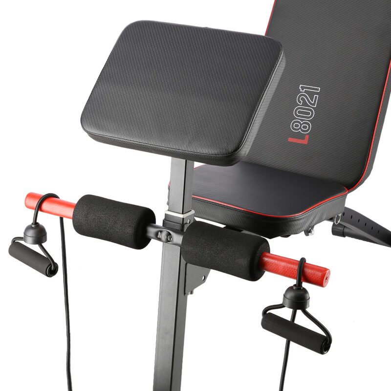L8021-benken er utstyrt med en justerbar predikant og utvidere montert foran på basen. Den gjennomtenkte designen til L8021-benken lar deg utføre mange forskjellige øvelser.