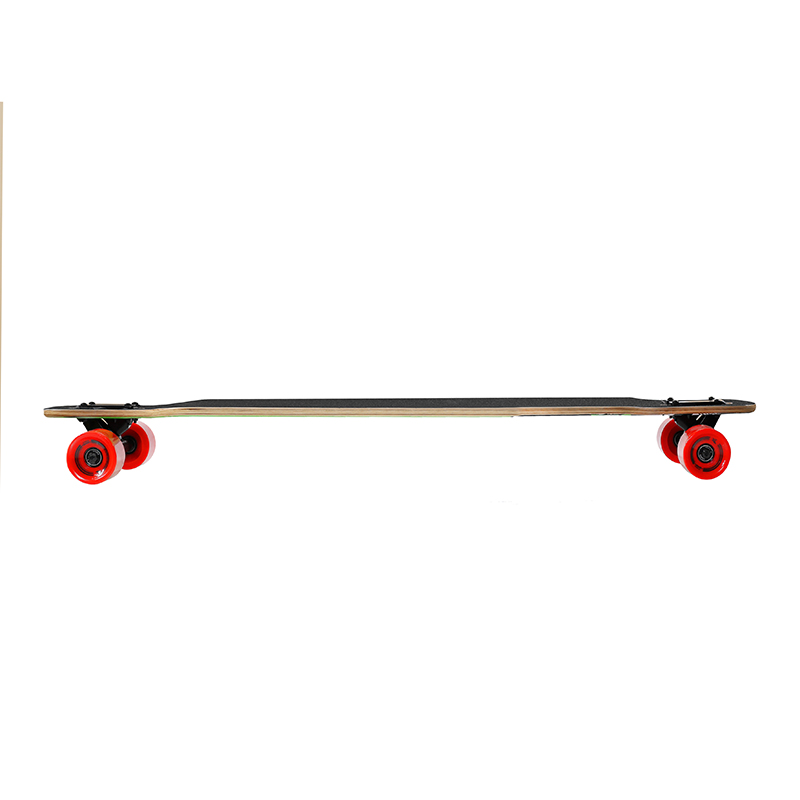 LONGBOARD WOOD HOMELAND SKELETON NILS EXTREME har en rasta-stil design. Det er et skjelett på bordplaten, og i bakgrunnen er det et flagg i tre farger: grønn, gul og rød. Fargene er symbolske for Rastafari-bevegelsen. Skateboardet er designet for rekreasjonskjøring på herdet underlag, samt for å utføre tekniske triks i skateparker og på ramper. Takket være drop-thru-systemet blir bena mindre slitne når du presser av, noe som gjør det mye lettere å tilbakelegge lange avstander. Wood Homeland longboard har 65 x 51 mm hjul, preget av utmerket grep. Bruken av 9-lags kanadisk lønnkryssfiner sikrer høy styrke og holdbarhet. I sin tur garanterer ABEC 9 klasse lagre utmerkede kjøreegenskaper og hastighet. Skateboardet er utstyrt med polyuretanhjul som er svært motstandsdyktige mot slitasje og perfekt demper vibrasjoner.