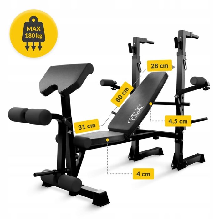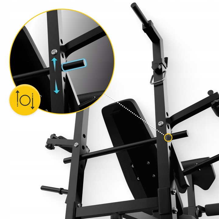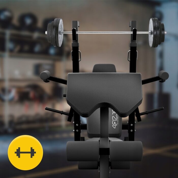 Multifunksjonell treningsbenk ULTRA med vektstangstativ og justerbar rygg for hjemmegym og styrketrening