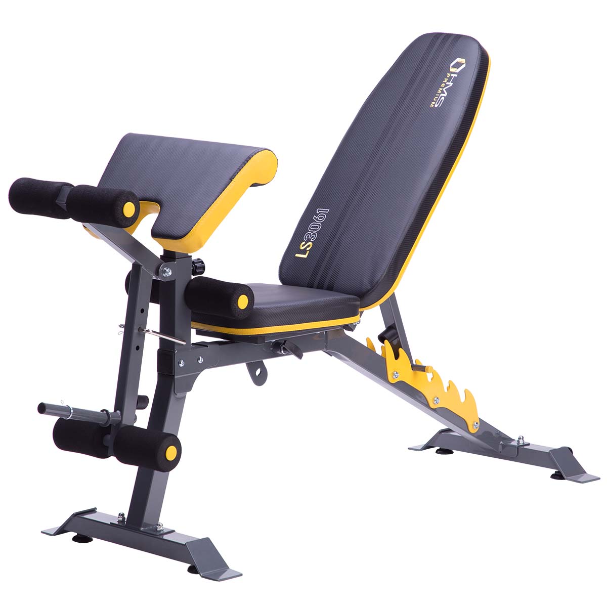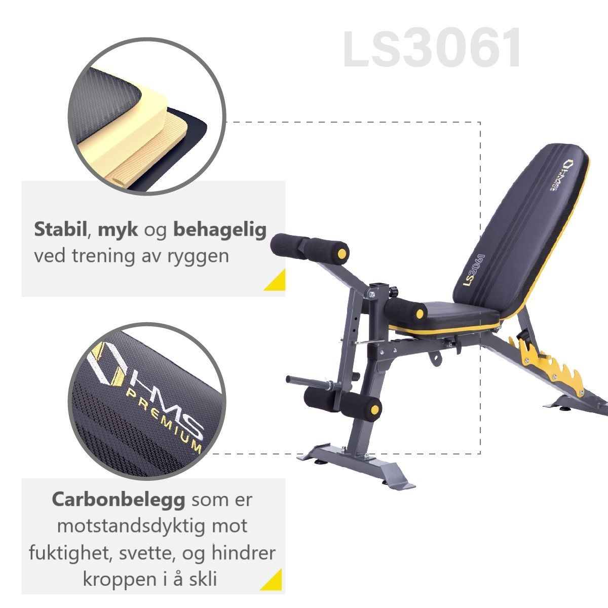 Multifunksjonelt treningsbenk 4 i 1 – HMS LS3061 – gir deg mange treningsmuligheter. Konstruksjonen gjør den perfekt for vektstangstativ, så vel som for trening med manualer.