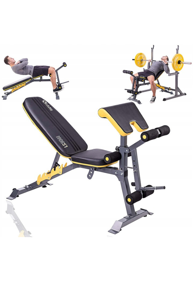 Treningsbenk gir deg mange treningsmuligheter. Konstruksjonen gjør den perfekt for vektstangstativ, så vel som for trening med manualer.