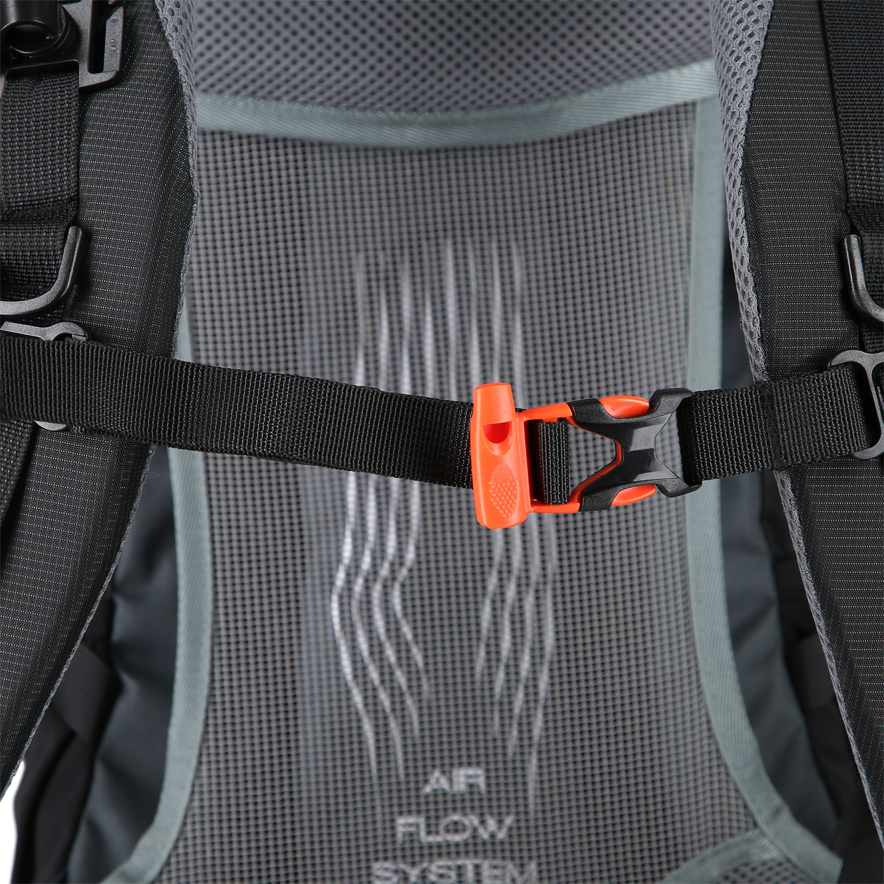 En innebygd nødsituasjon fløyte er et viktig sikkerhetselement som kan være avgjørende i en nødsituasjon. Et annet trygghetstiltak er de reflekterende elementene på fronten av ryggsekken, som øker synligheten din – viktig for både natt- og dagbruk.