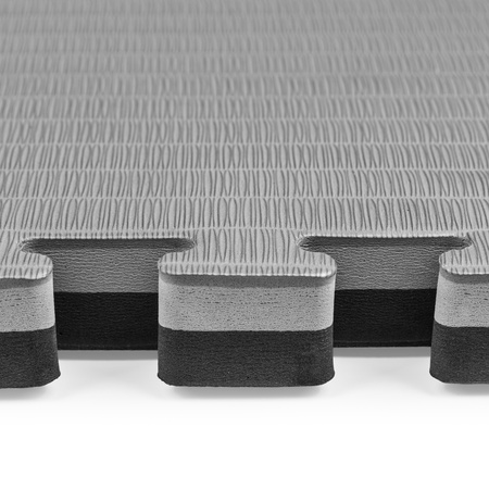 Premium puzzle treningsmatte 100 x 100 x 4 cm svart og grå – Disse mattene kjennetegnes ved svært høy tetthet, kombinert med god fasthet og støtdemping. Viktigst av alt, de har forsterket holdbarhet som sikrer lengre levetid sammenlignet med standardmatter.
