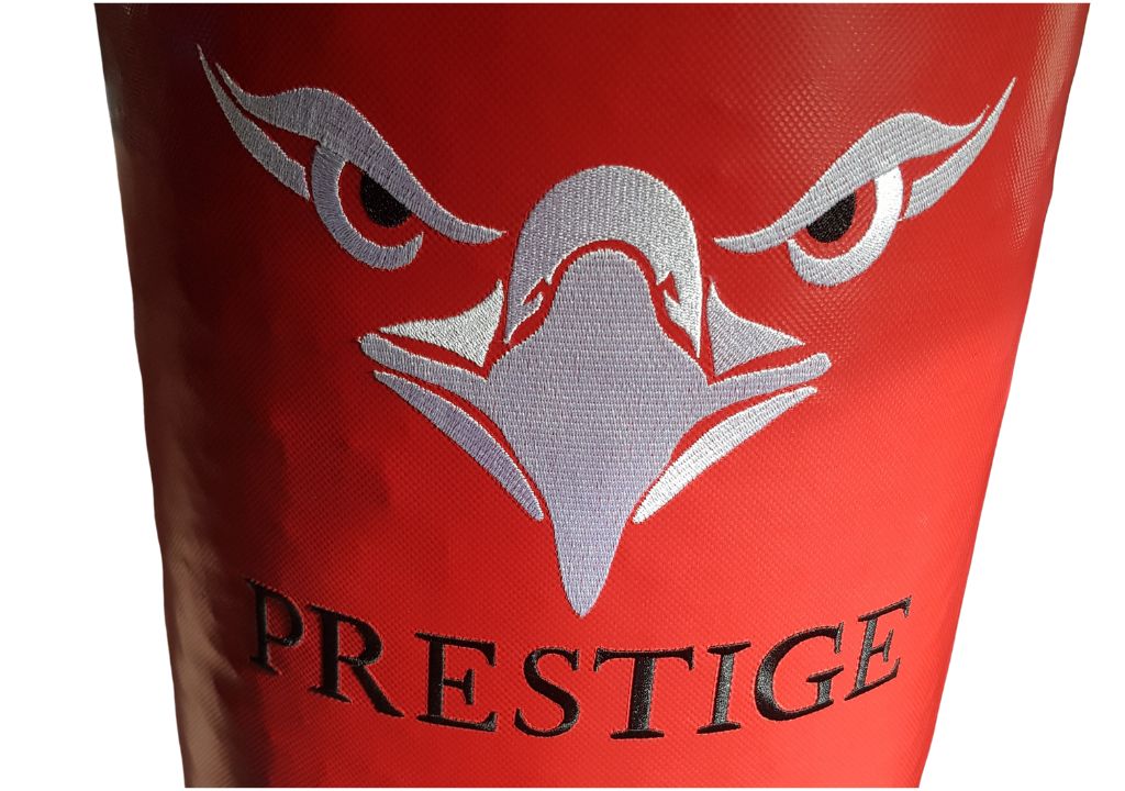 Boksesekk har Prestige-logoen laget med broderimetoden.