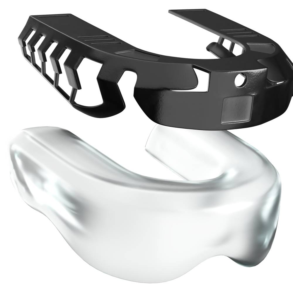 En ekstra forsterket kompresjonssone er ansvarlig for bedre demping av hakestøt der underkjeven treffer overkjeven hardt. Slik amortisering reduserer ikke bare risikoen for tannskade, men svekker også sjokket, og reduserer risikoen for knockout.