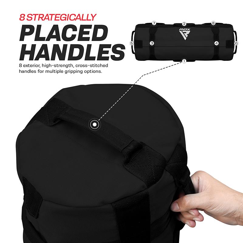 Hver sandsekk er utstyrt med åtte sterke håndtak og høy kvalitet søm, noe som gir deg maksimal styrke og lett håndtering. Dette designet gjør det enkelt å bruke sandsekkene i forskjellige øvelser, fra styrketrening til kondisjonstrening. Du kan enkelt justere vekten ved å velge det optimale antallet sandsekker som følger med hver bag, slik at du kan tilpasse treningen til dine behov.