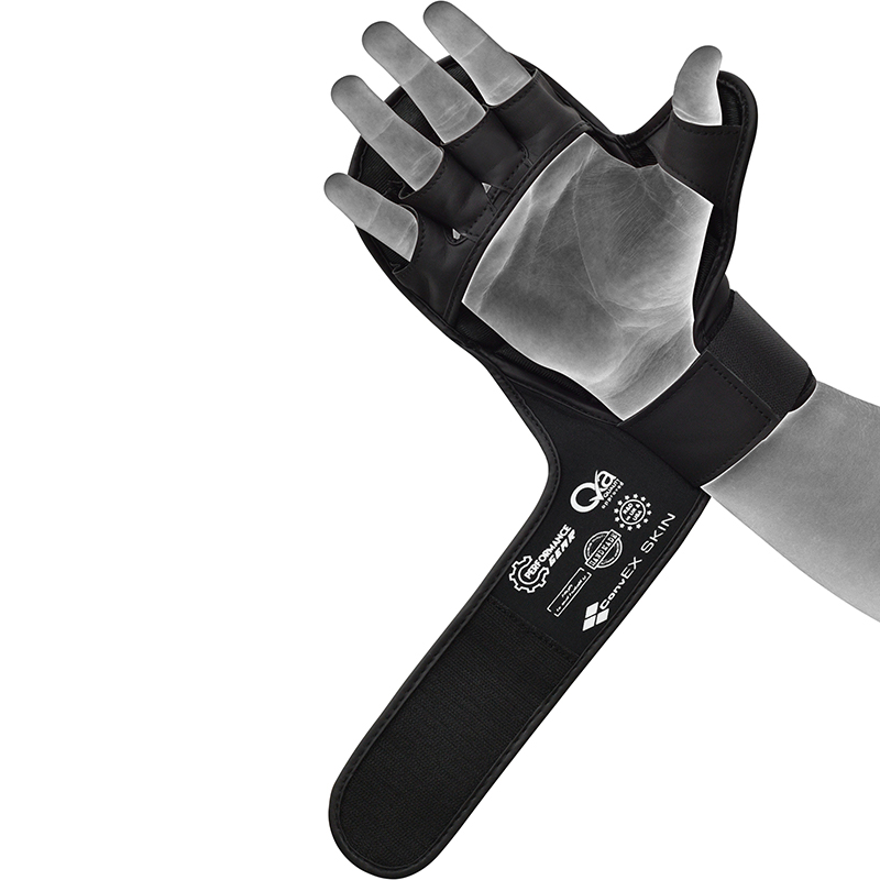 Hanskene har en polstret tommel laget av EVA-Lution-ark, som gir ekstra støtdemping og beskyttelse. Dette er spesielt viktig under grappling, hvor tommelen ofte utsettes for belastning og potensielle skader. RDX Grappling Gloves Shooter Aura Plus T-17 gir deg trygghet til å utføre alle bevegelser uten frykt for skader.