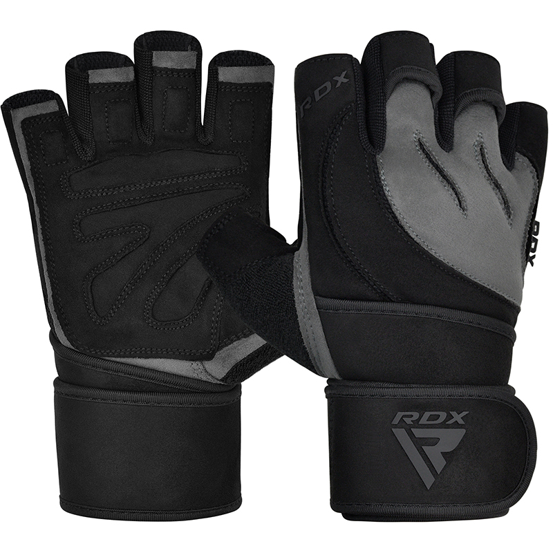 Premium RDX L4 open finger treninghansker i grå-svart, størrelse XL med forsterket grep og komfortabel passform – perfekt for avancerte styrkeøkter, vektløfting og treningsøkter med høy intensitet.