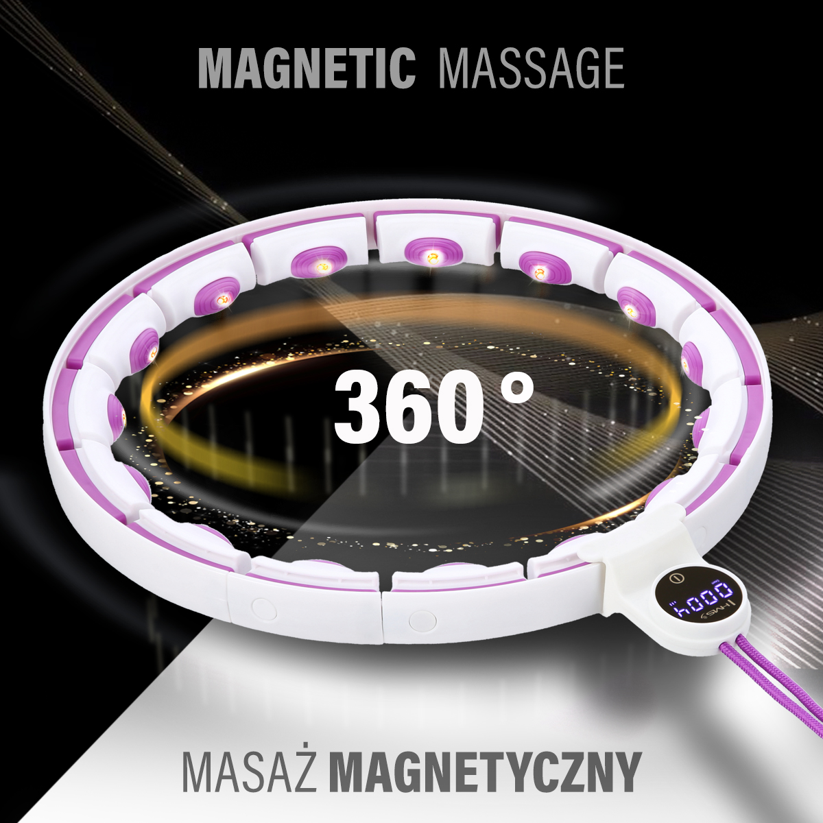 SET HULA HOP MAGNETIC WHITE/VIOLET HHM17 med VEKT + COUNTER HMS + WAIST SUPPORT BR163 BLACK