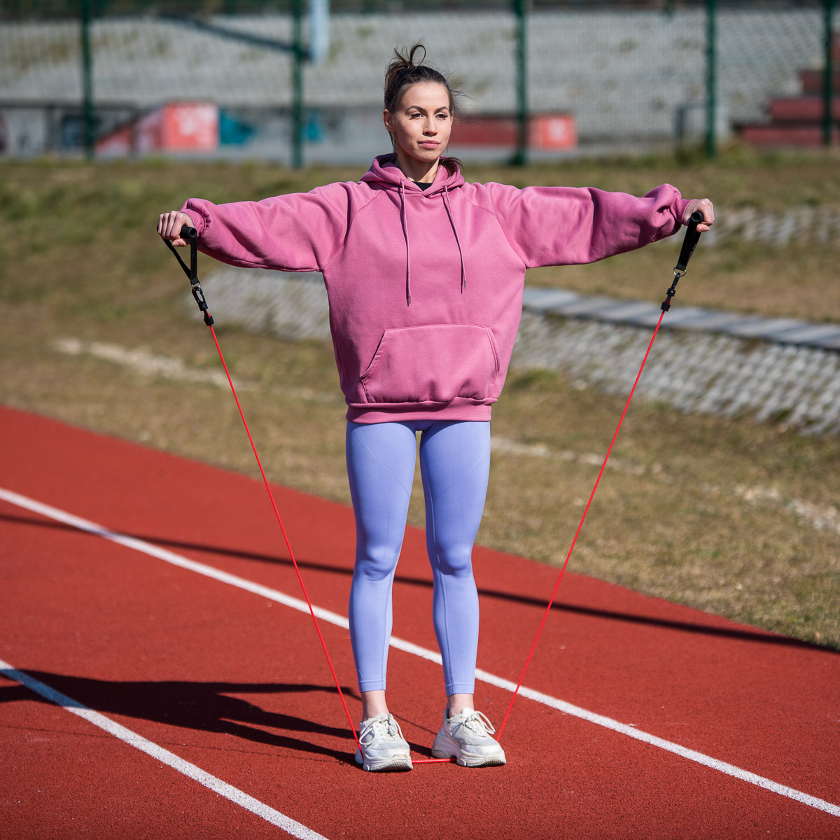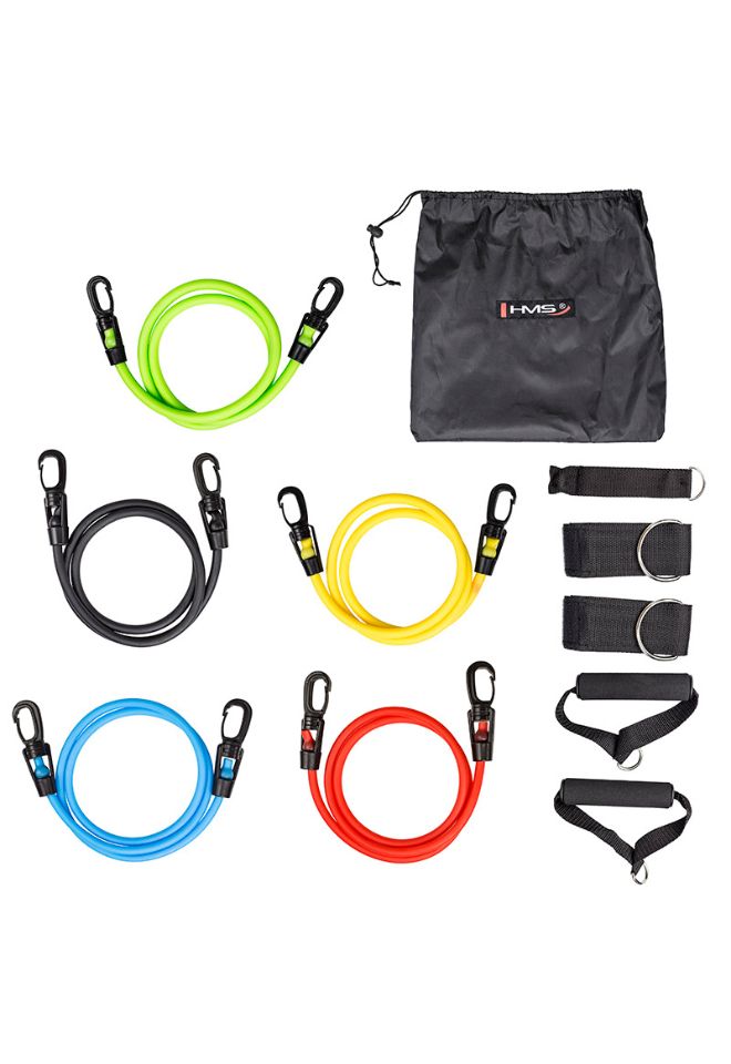 Gummiene bruker vekten av brukerens kropp for å forbedre kondisjonen og styrken. Høy kvalitet, gjennomtenkt design og holdbarhet garanterer vellykket trening under alle forhold. Settet inneholder 5 motstandsgummier, to håndtak, to ankelholdere og ett dørhåndtak.