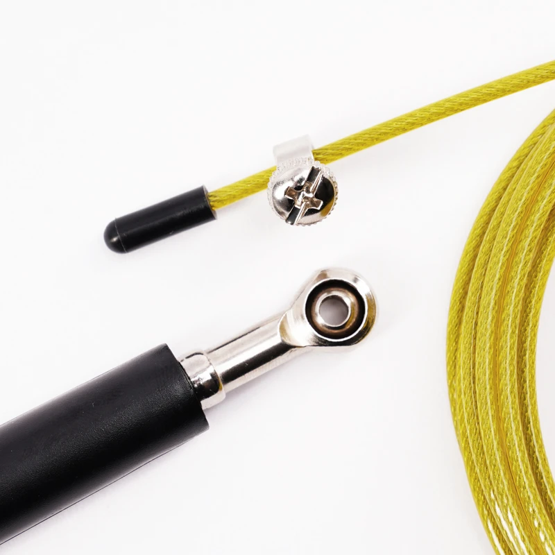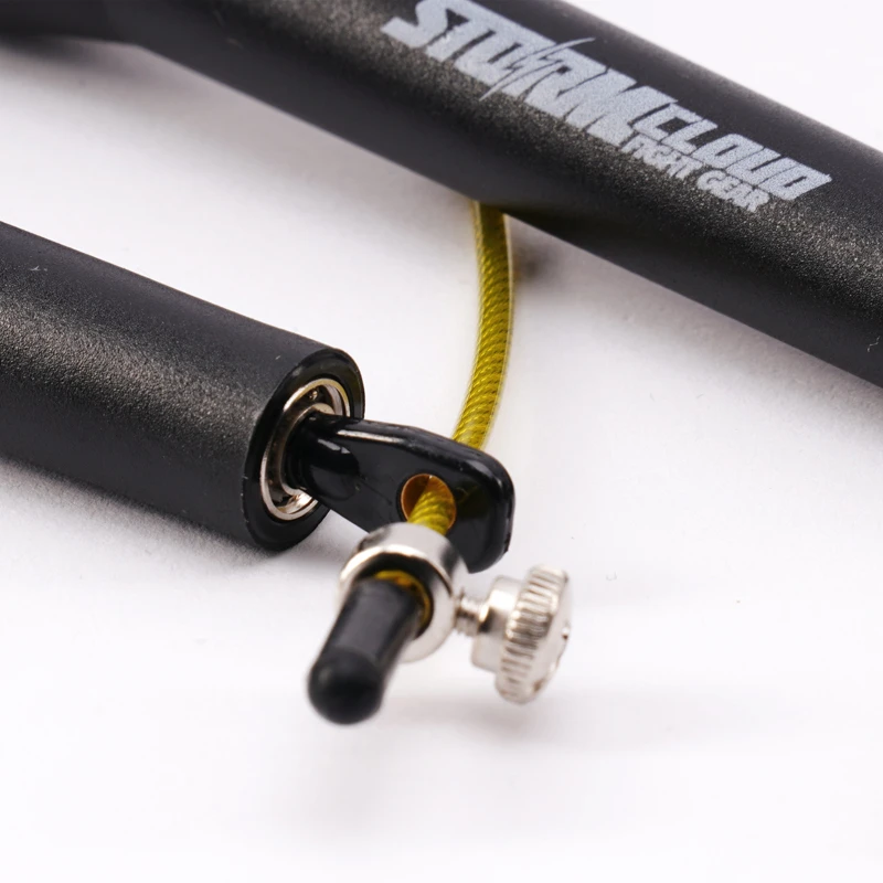 Den har større plasthåndtak og en metall tau for bedre hastighet. Hoppetauet ligger mer stabilt i hånden og er utstyrt med et lager skjult i håndtaket. Vi har beriket denne modellen med en kabeljustering for bedre å tilpasse den til deg!