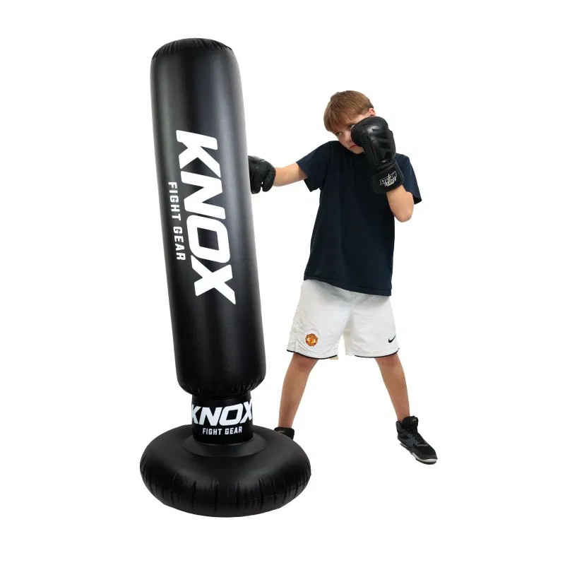 Oppblåsbar Stående Boksebag Knox for Barn – Svart – Gi barnet ditt aktiv moro med den oppblåsbare boksebaggen Knox, designet spesielt for de yngste utøverne! Denne stående treningsbagen kombinerer lek og trening, og hjelper barn med å utvikle smidighet, hurtighet og koordinasjon i et trygt og morsomt miljø.