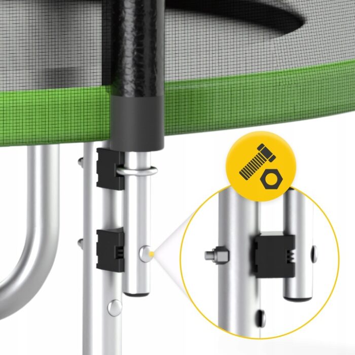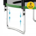 Trampoline for barn CLASSIC 312×312 cm med sikkerhetsnett UV beskyttelse og stålramme for hagelek er utviklet med fokus på trygghet, stabilitet og komfort for barn i alle aldre. Med sin solide konstruksjon og romslige størrelse blir dette familiens favoritt i hagen!