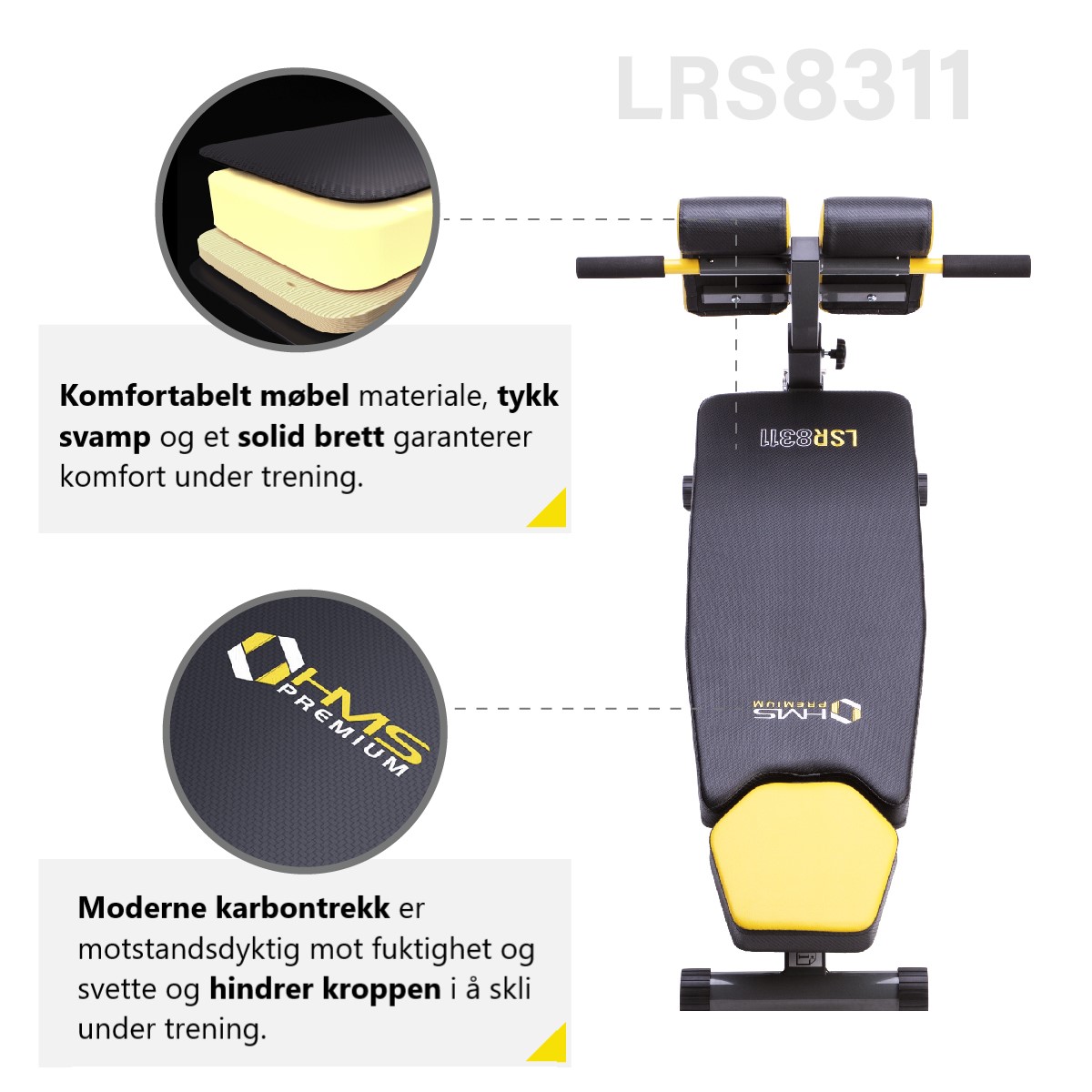 Alle komponentene til LSR8311 HMS PREMIUM-benken gjør den til et multi-tasking-produkt som vil fungere utmerket i ethvert hjemme treningsstudio.